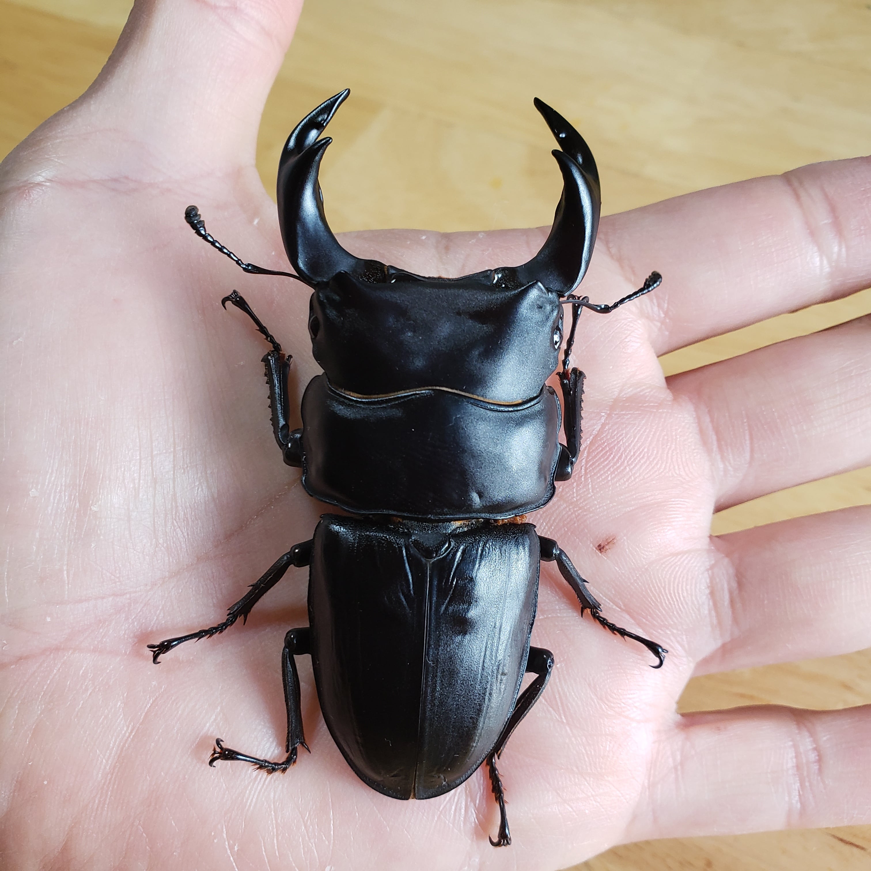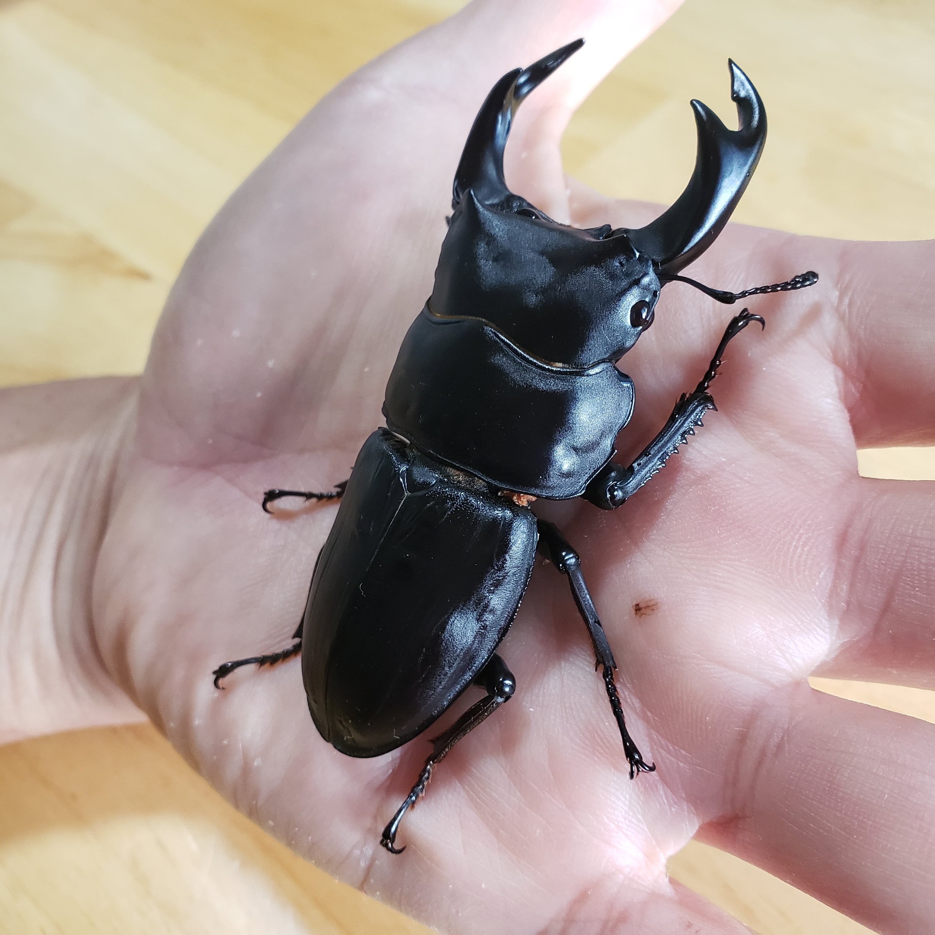 ●残念ながら、♂は★になってしまったのですが、このラインから♂は全長85,5㎜頭幅31.3㎜。♀は全長60.0㎜の個体が出ております。