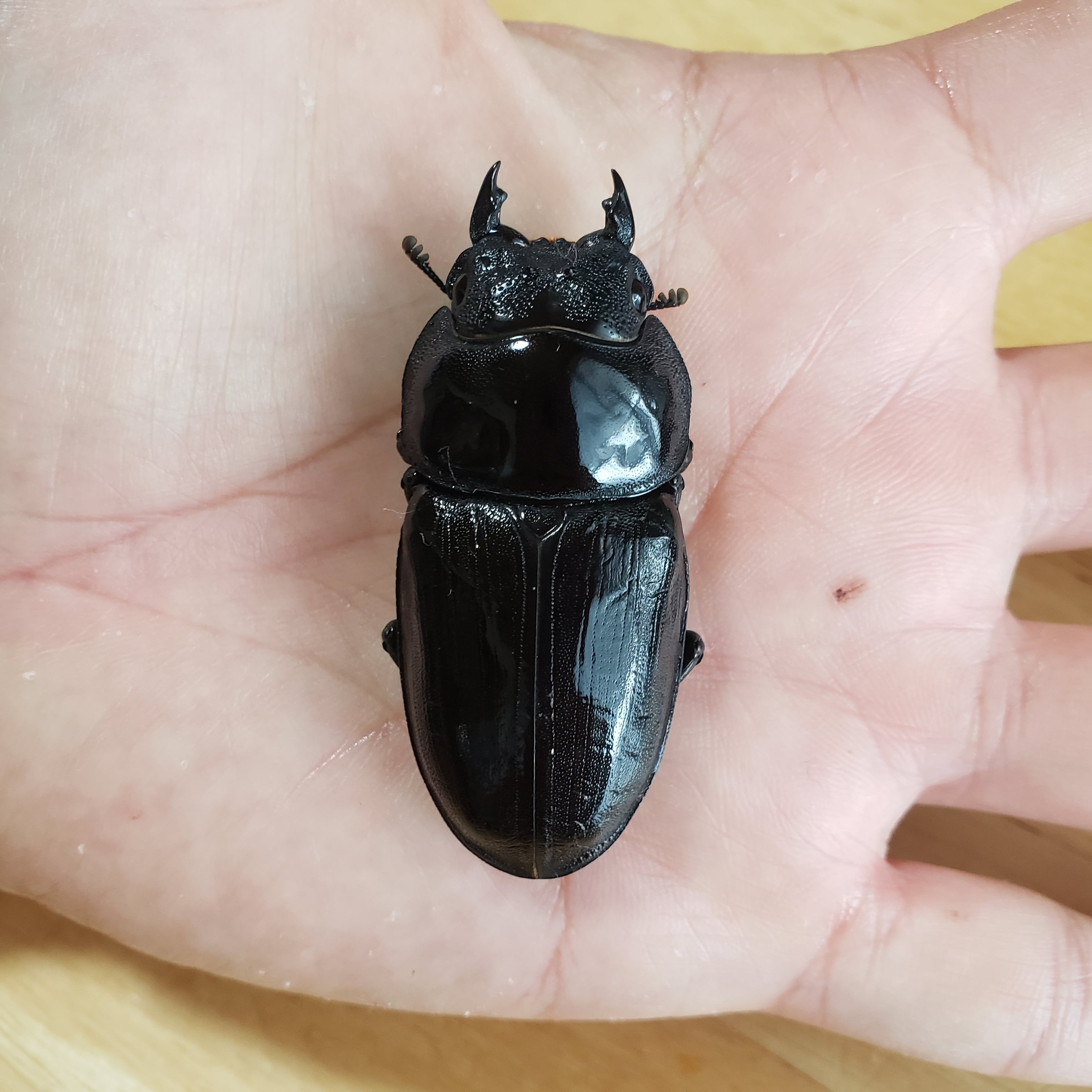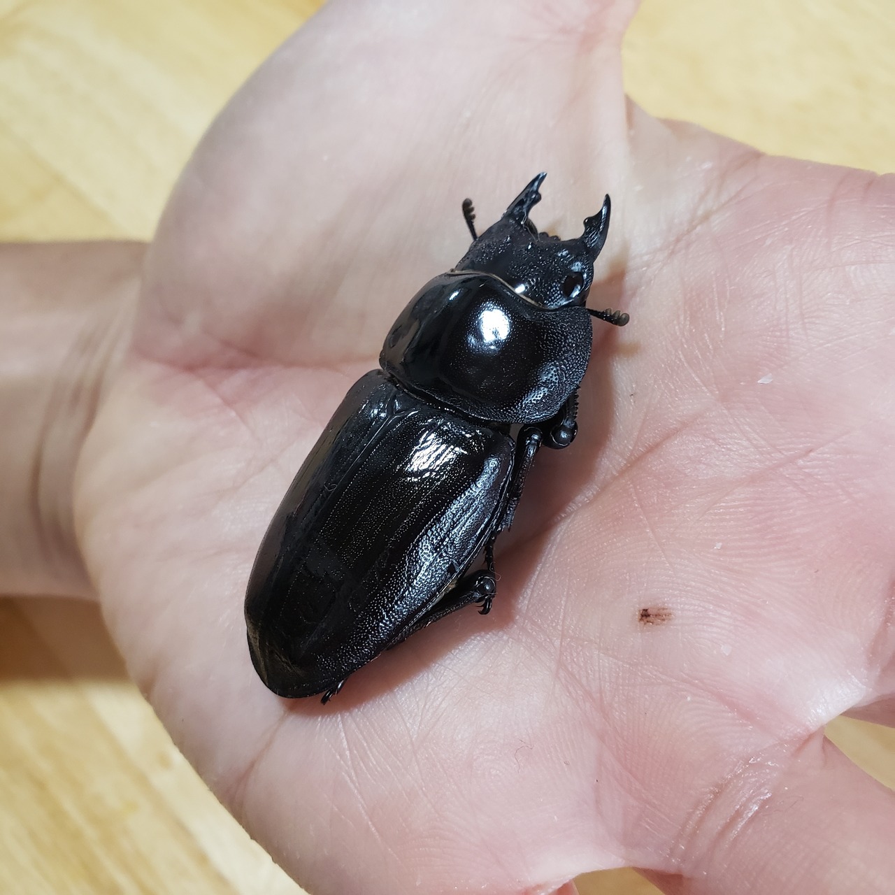 ●残念ながら、♂は★になってしまったのですが、このラインから♂は全長85,5㎜頭幅31.3㎜。♀は全長60.0㎜の個体が出ております。