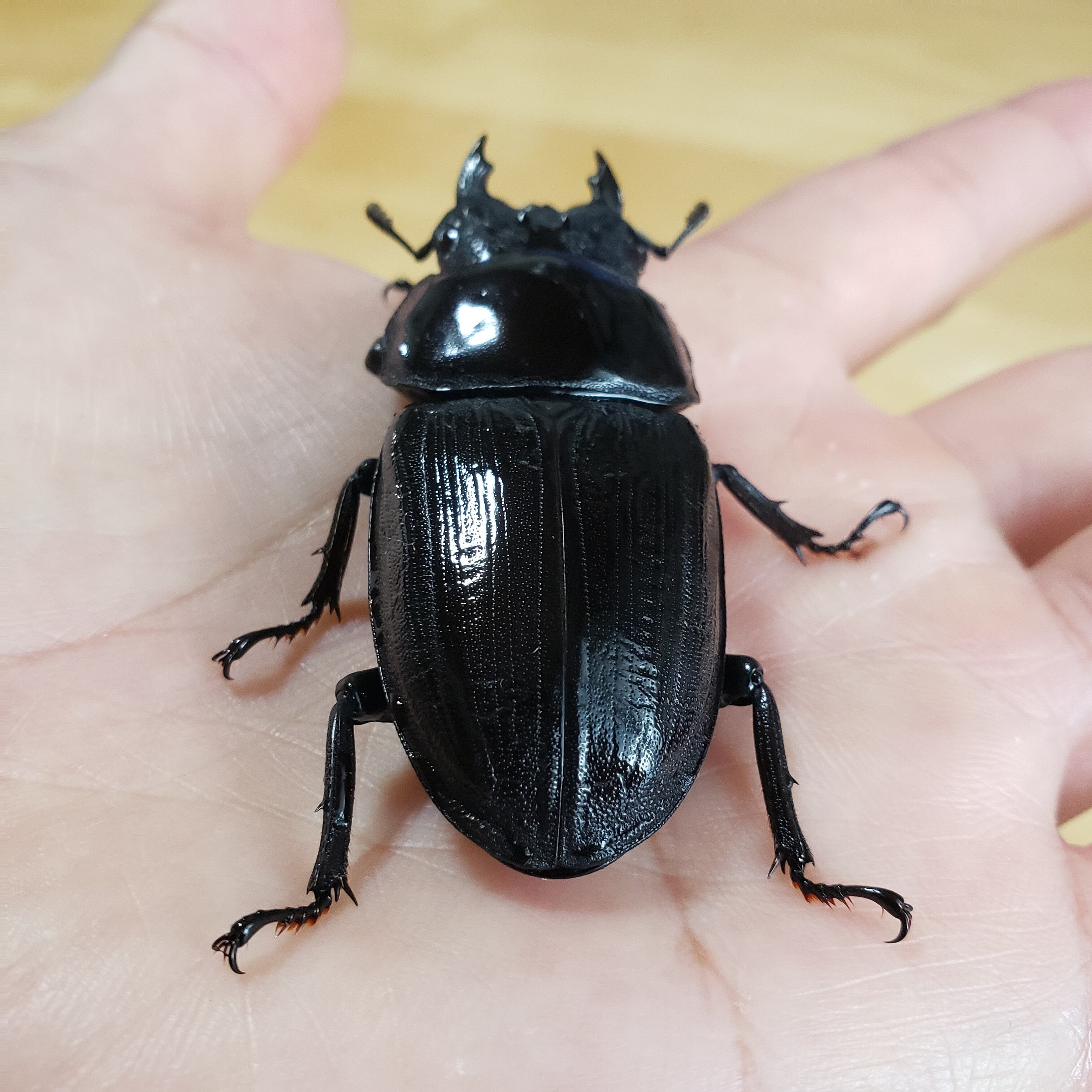 ●残念ながら、♂は★になってしまったのですが、このラインから♂は全長85,5㎜頭幅31.3㎜。♀は全長60.0㎜の個体が出ております。